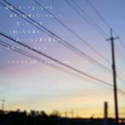歌詞 Back Number در توییتر 頑張ってって言いながら あまり無理しないでねって 思っています 心配になる事も 寂しくなる事もあるけど 元気でいてくれたら ささえる人の歌 Back Number Https T Co Zkkf1ijeda