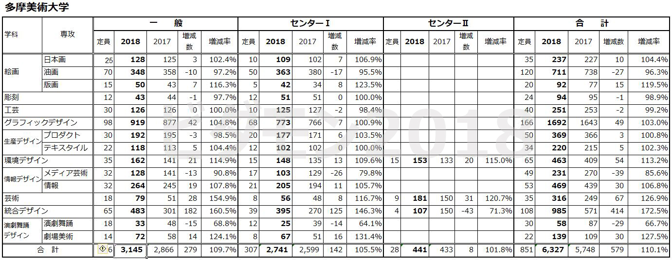 ビダモン2018速報 東京4美大の2018年度一般入試志願者数が確定しました
