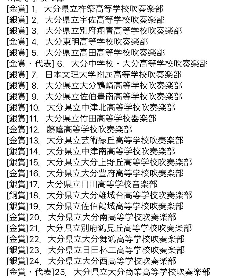 Yell Twitter પર 大分県吹奏楽コンクール 高等学校の部 表彰結果 九州大会推薦団体 大分高等学校 大分商業高等学校