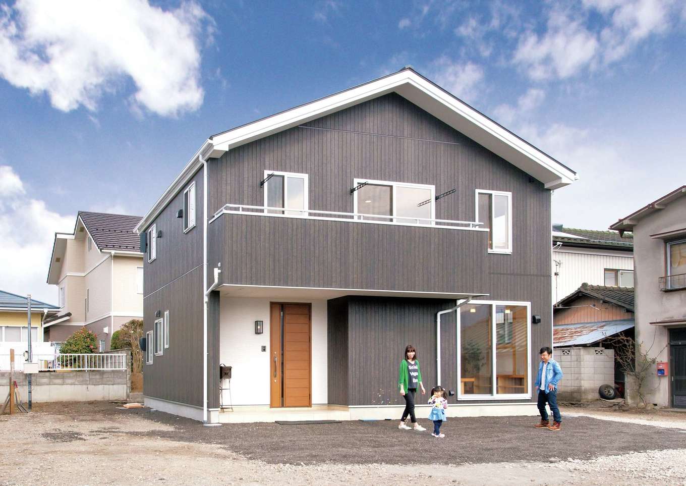 黒を基調としたシンプルモダンな外観 ナチュラルを基調とした室内とのギャップが面白い イエタテ